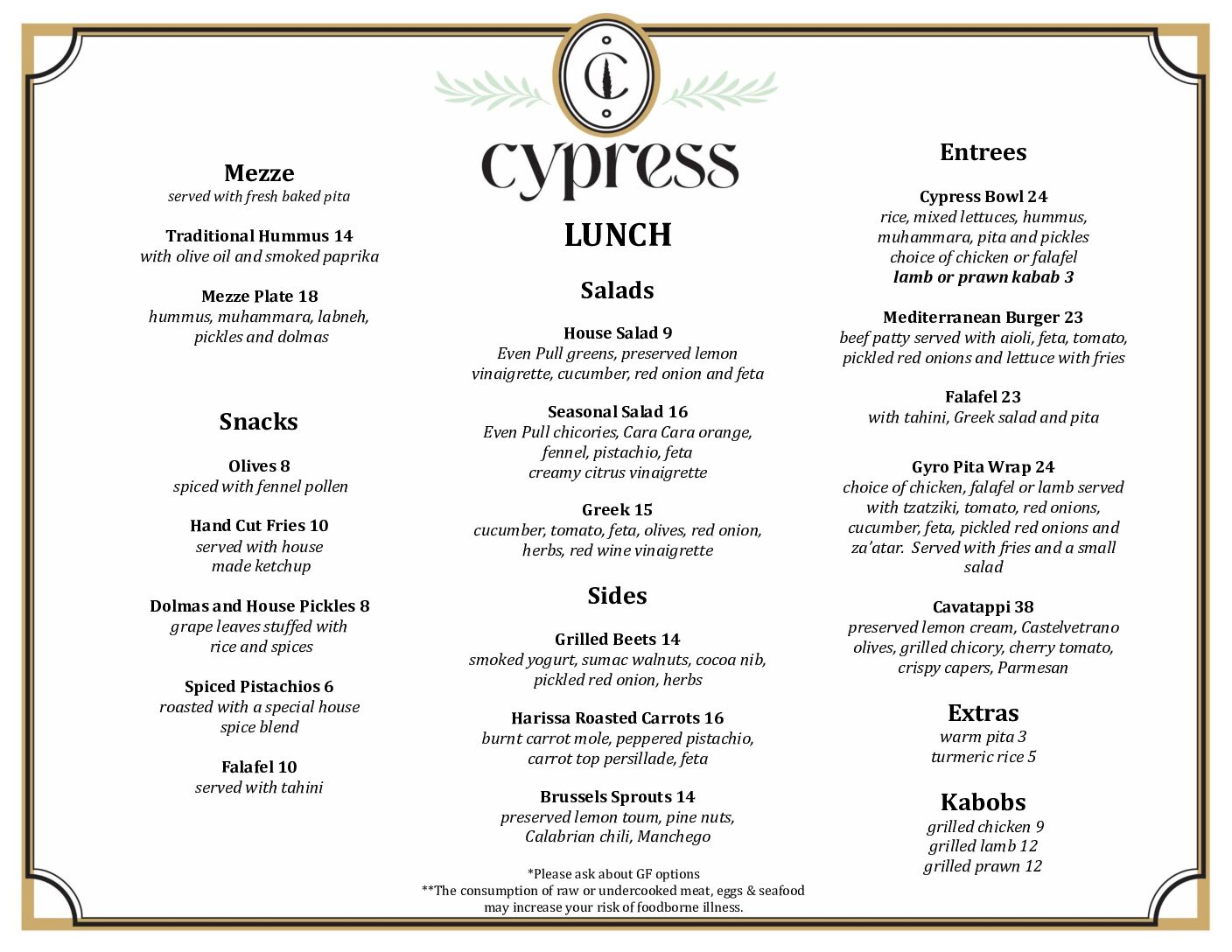 Lunch & Dinner service only