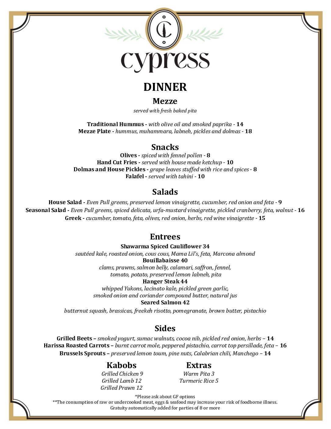 Lunch & Dinner service only